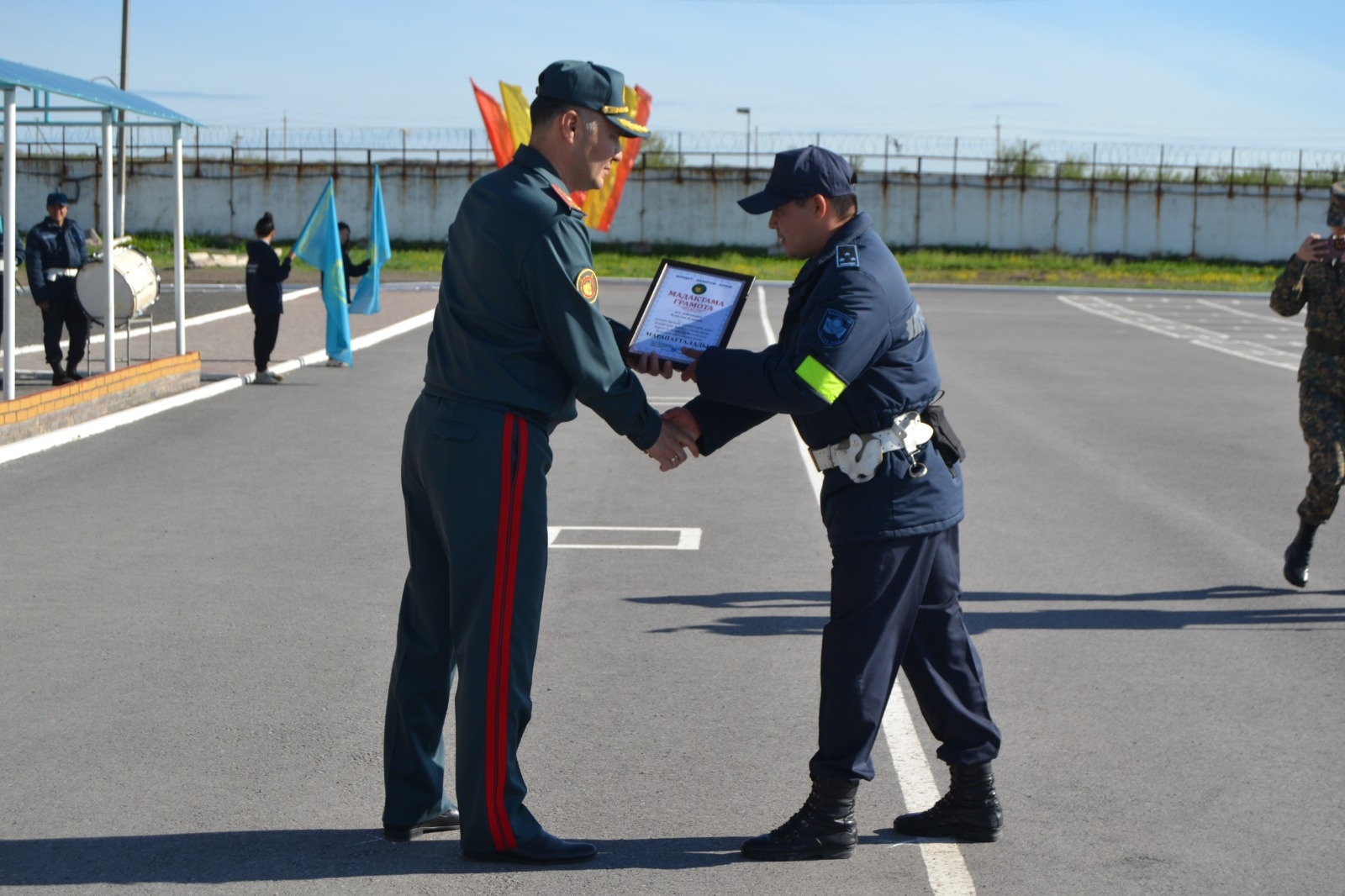 16 мая на строевом плацу воинской части прошло торжественное мероприятие «чествование военнослужащих». Мероприятие началось с доклада старшего группы применения по противопаводковым мероприятиям командира воинской части 5451 Национальной гвардии подполковника Рауана Омарова Командующему Региональным командованием Орталық.